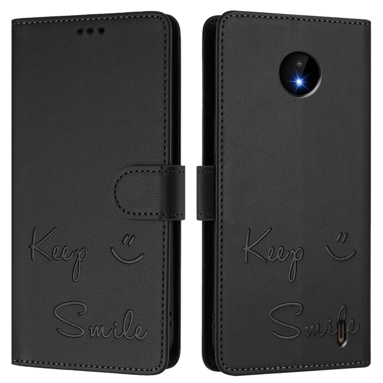 Funda de Cuero Rfid con Relieve Sonriente para Nokia C10/C20 (Negra)