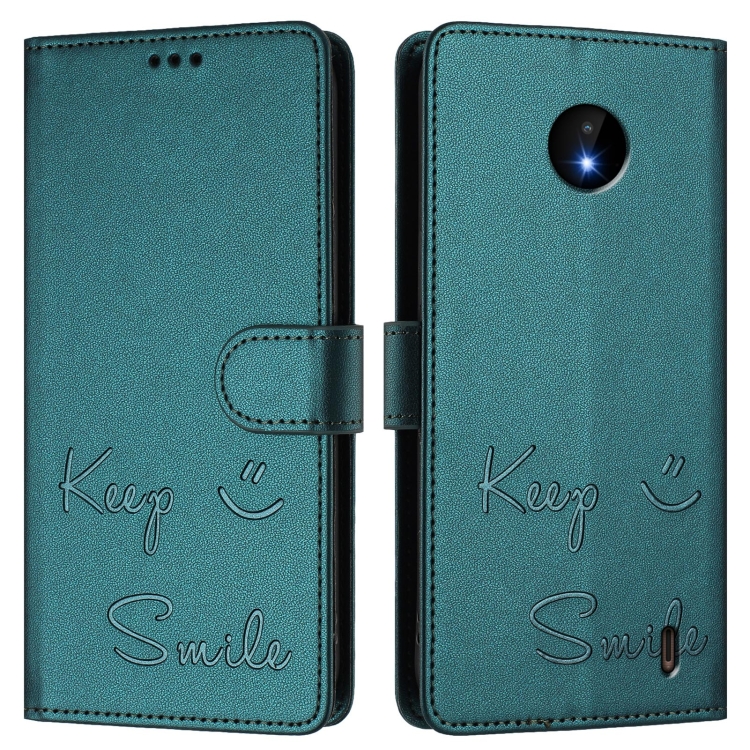 Funda de Cuero Rfid con Relieve Sonriente para Nokia C10/C20 (Verde Pavo Real)