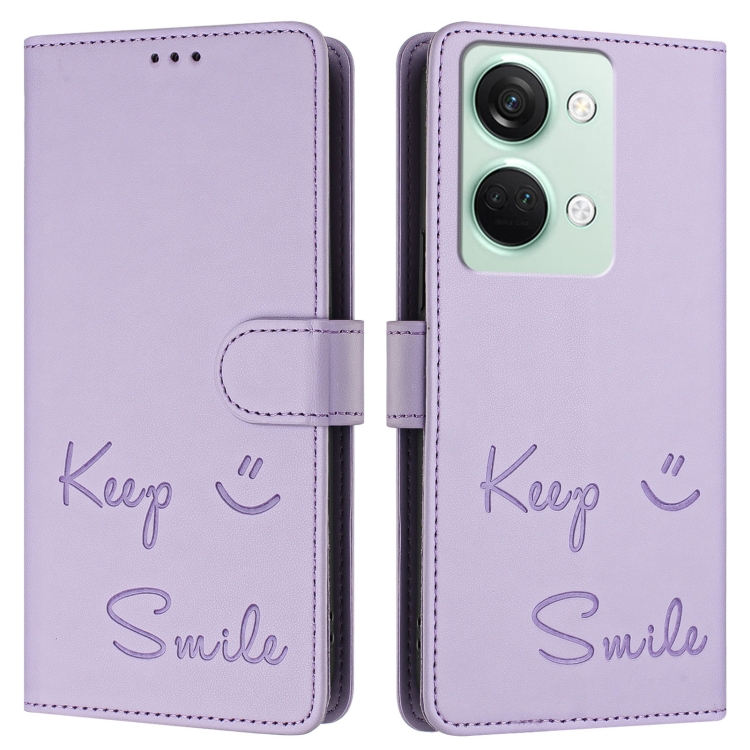 Funda de Cuero Rfid con Relieve Sonriente para OnePlus Ace 2V/Nord 3 (Morado Claro)