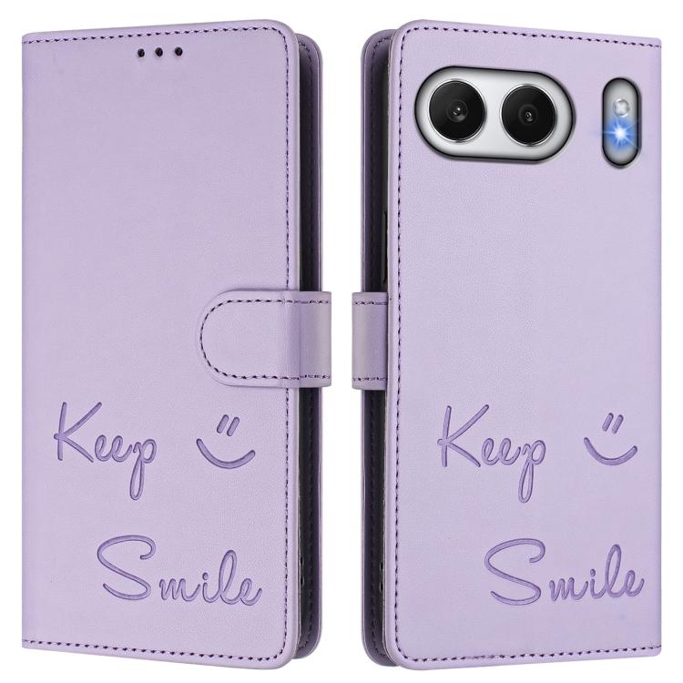 Funda de Cuero Rfid con Relieve Sonriente para OnePlus Nord 4 5G (Morado Claro)