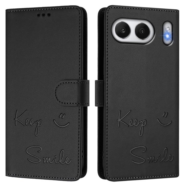 Funda de Cuero Rfid con Relieve Sonriente para OnePlus Nord 4 5G (Negra)