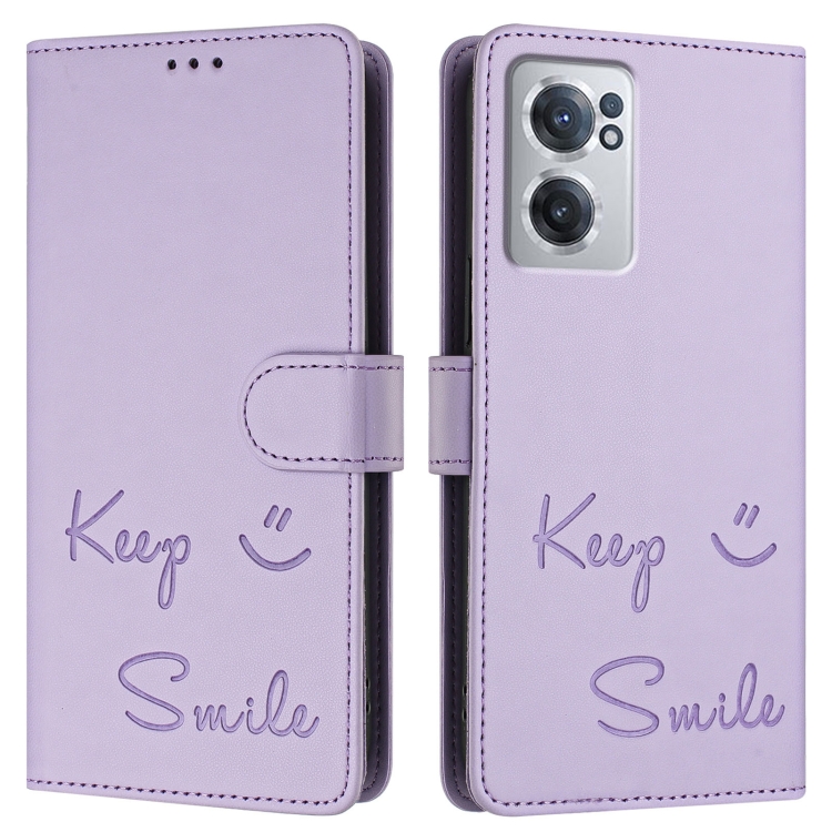 Funda de Cuero Rfid con Relieve Sonriente para OnePlus Nord Ce 2 5G (Morado Claro)