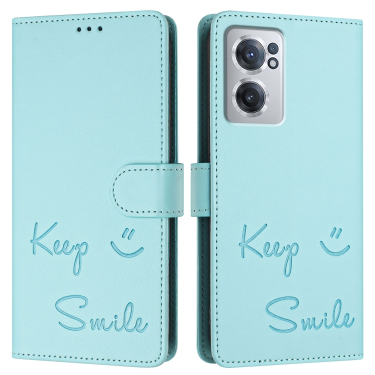 Funda de Cuero Rfid para OnePlus Nord Ce 2 5G con Relieve Sonriente (Verde Menta)