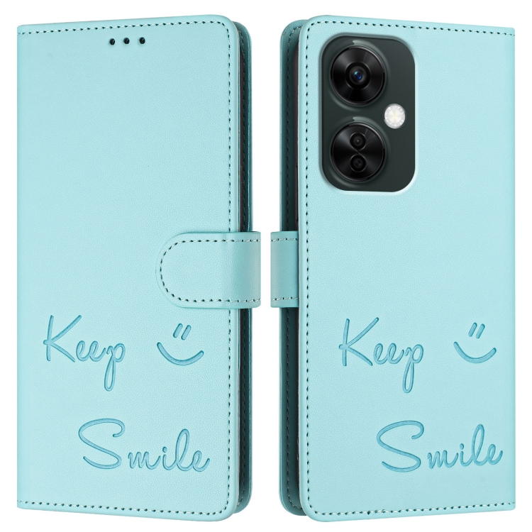 Funda de Cuero Rfid con Relieve Sonriente para OnePlus Nord Ce3 (Verde Menta)