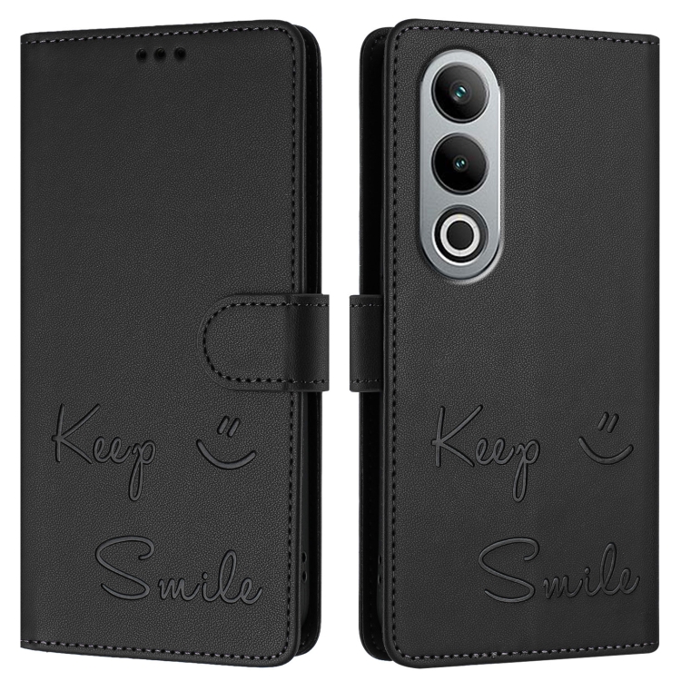 Funda de Cuero Rfid con Relieve Sonriente para OnePlus Nord Ce4 (Negra)
