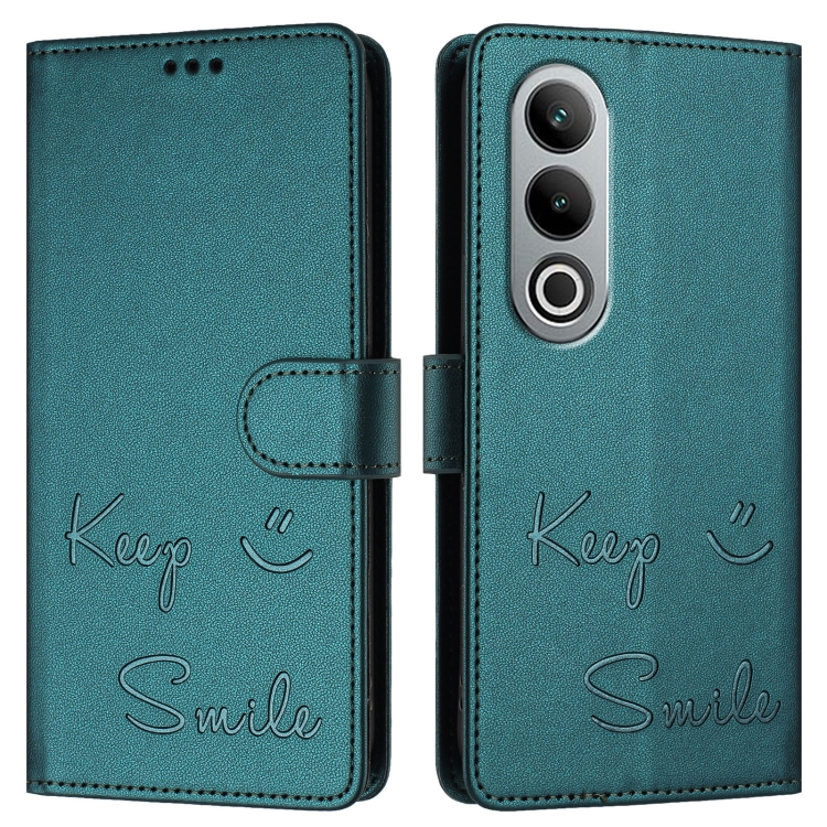 Funda de Cuero Rfid con Relieve Sonriente para OnePlus Nord Ce4 (Verde Pavo Real)
