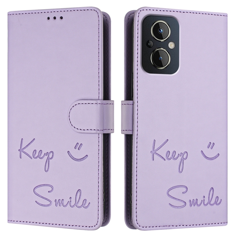 Funda de Cuero Rfid con Relieve Sonriente para OnePlus Nord N20 5G (Morado Claro)