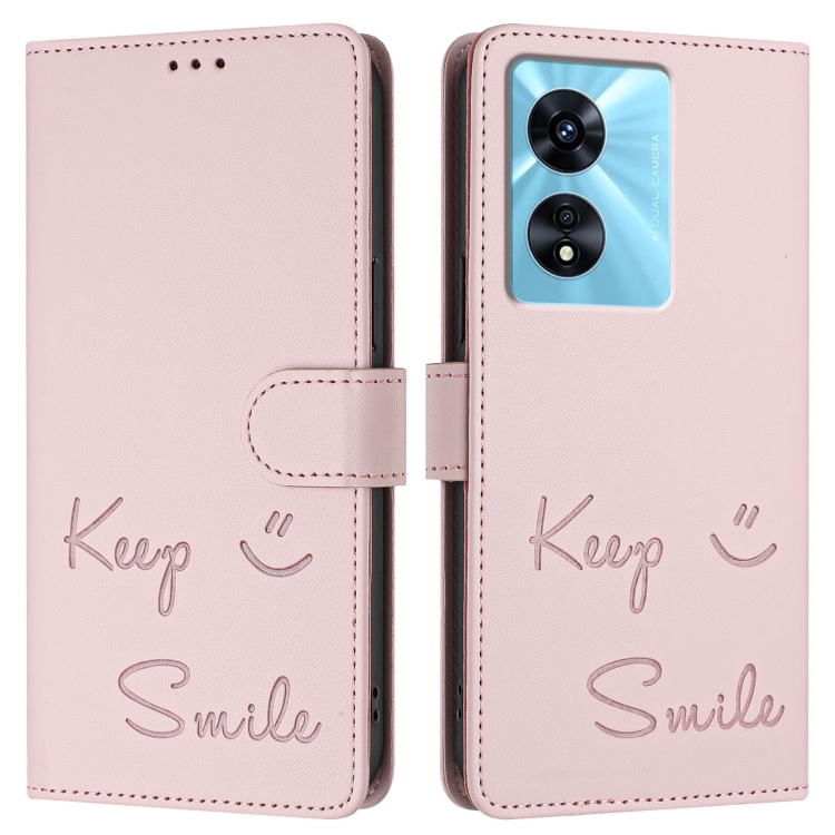 Funda de Cuero Rfid con Relieve Sonriente para OnePlus Nord N300 (Rosa)