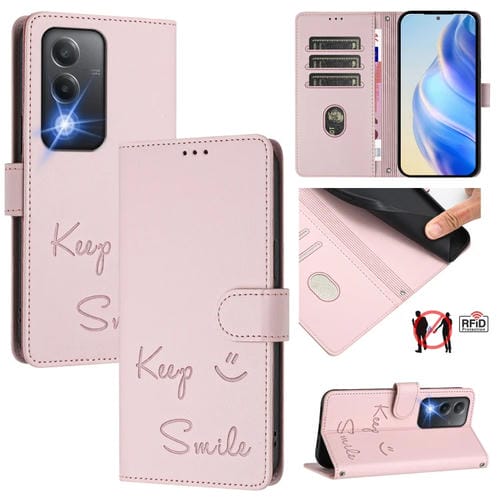 Funda de Cuero Rfid con Relieve Sonriente para Oppo A80 5G Eu (Rosa)