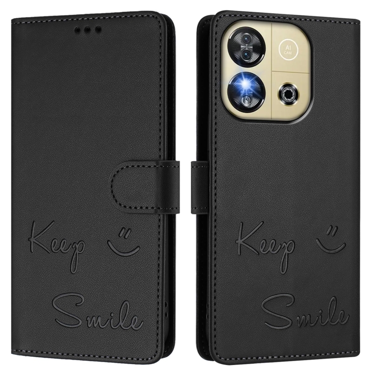 Funda de Cuero Rfid con Relieve Sonriente para Oukitel C57S (Negra)