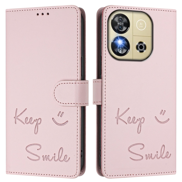 Funda de Cuero Rfid para Oukitel C57S con Relieve Sonriente (Rosa)
