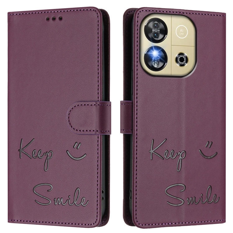 Funda de Cuero Rfid con Relieve Sonriente para Oukitel C57S (Violeta)