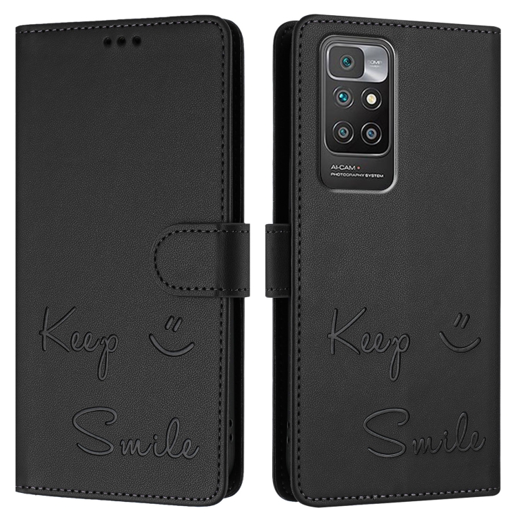 Funda de Cuero Rfid con Relieve Sonriente para Redmi 10 / Redmi 10 2022 (Negra)