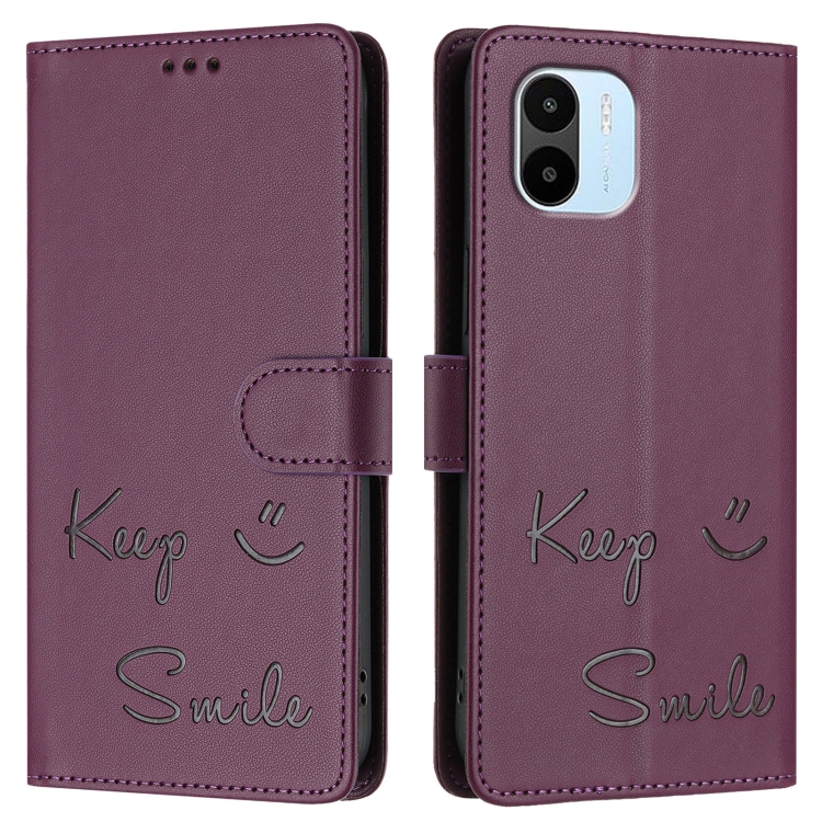 Funda de Cuero Rfid con Relieve Sonriente para Redmi A1/A2 (Violeta)