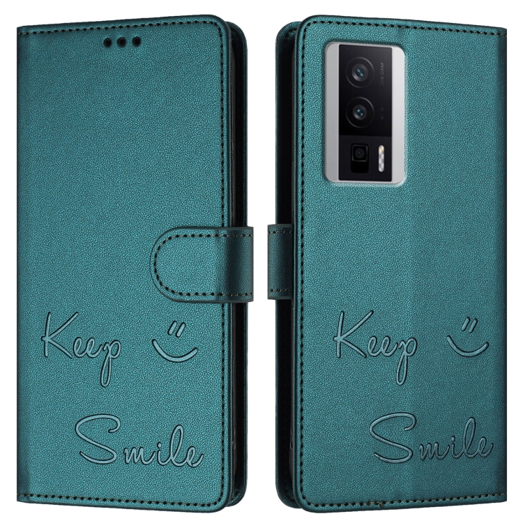 Funda de Cuero Rfid con Relieve Sonriente para Redmi K60/K60 Pro (Verde Pavo Real)
