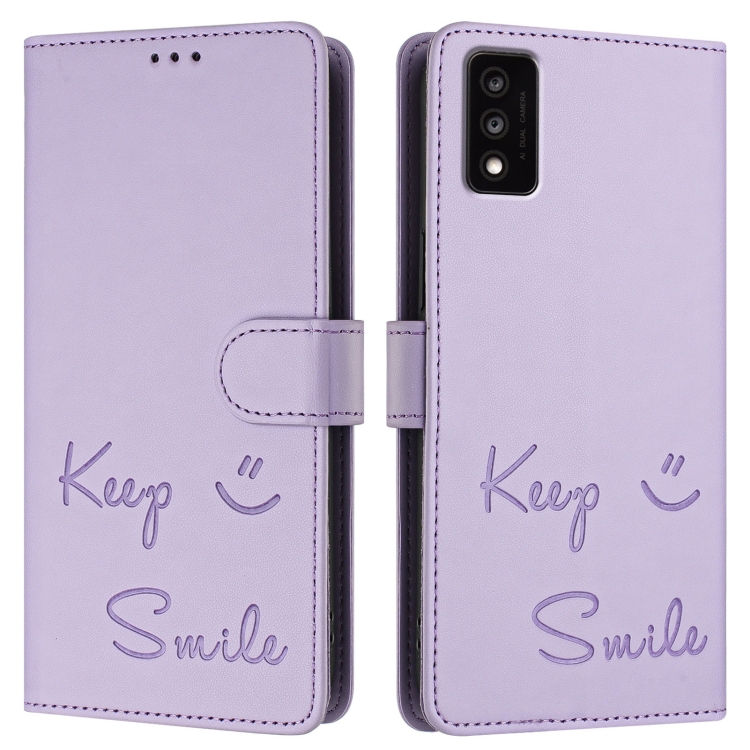 Funda de Cuero Rfid con Relieve Sonriente para TCL 30T T603Dl (Morado Claro)