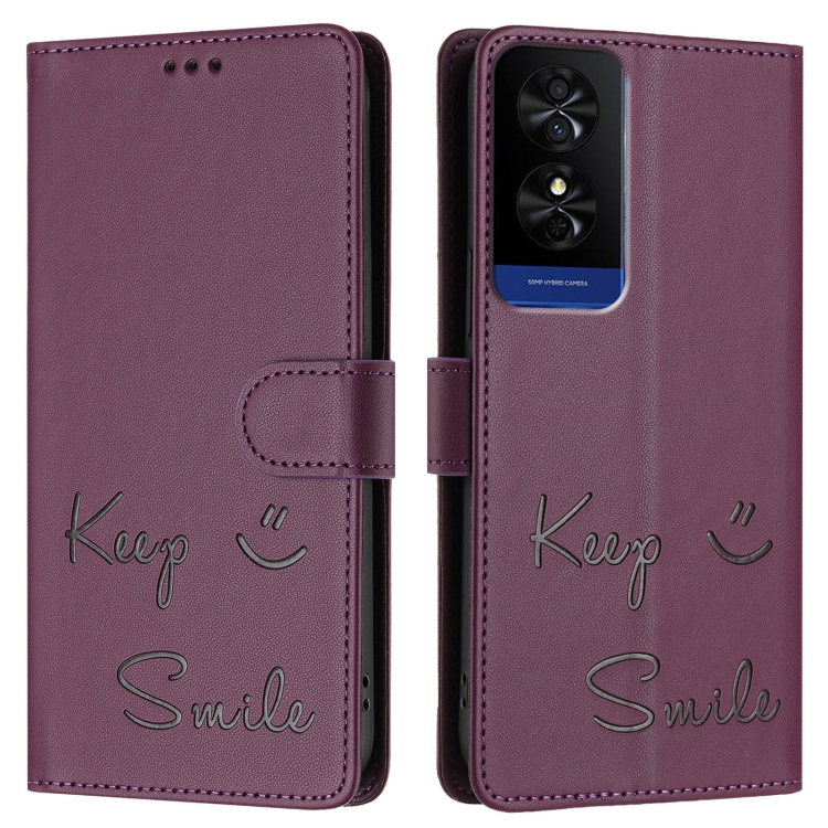 Funda de Cuero Rfid para TCL 50 5G con Relieve Sonriente (Violeta)