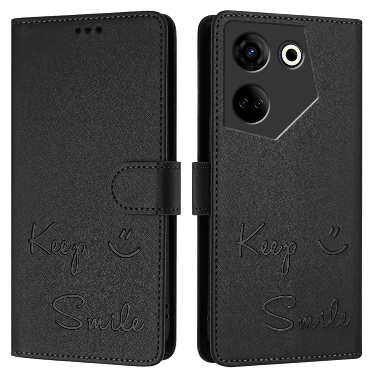 Funda de Cuero Rfid con Relieve Sonriente para Tecno Camon 20/20 Pro 4G (Negra)