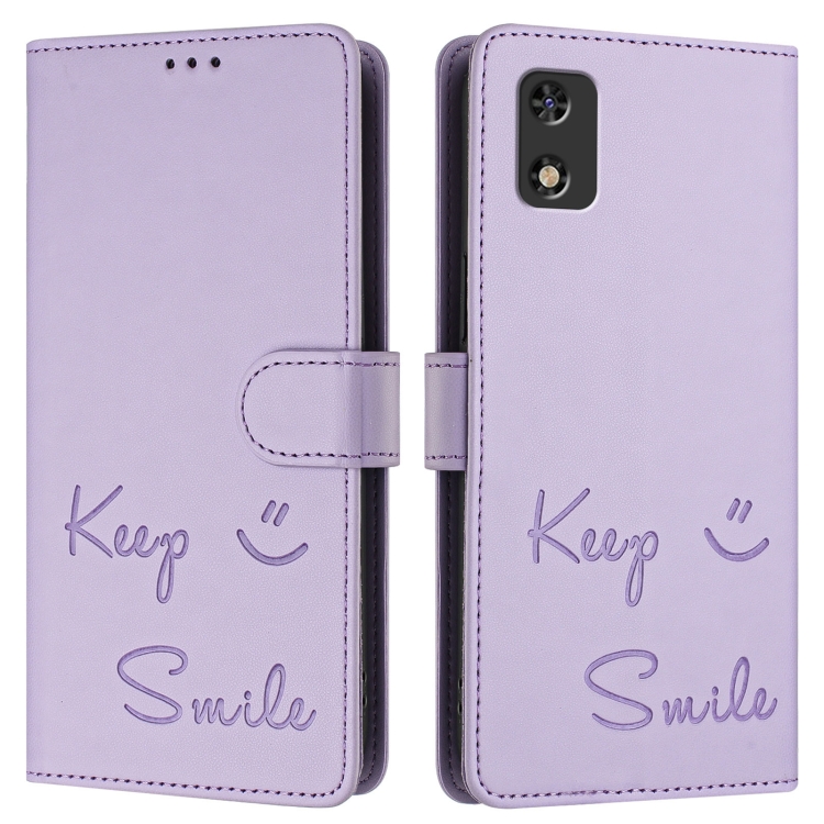 Funda de Cuero Rfid para Tecno Pop 5C con Relieve Sonriente (Morado Claro)