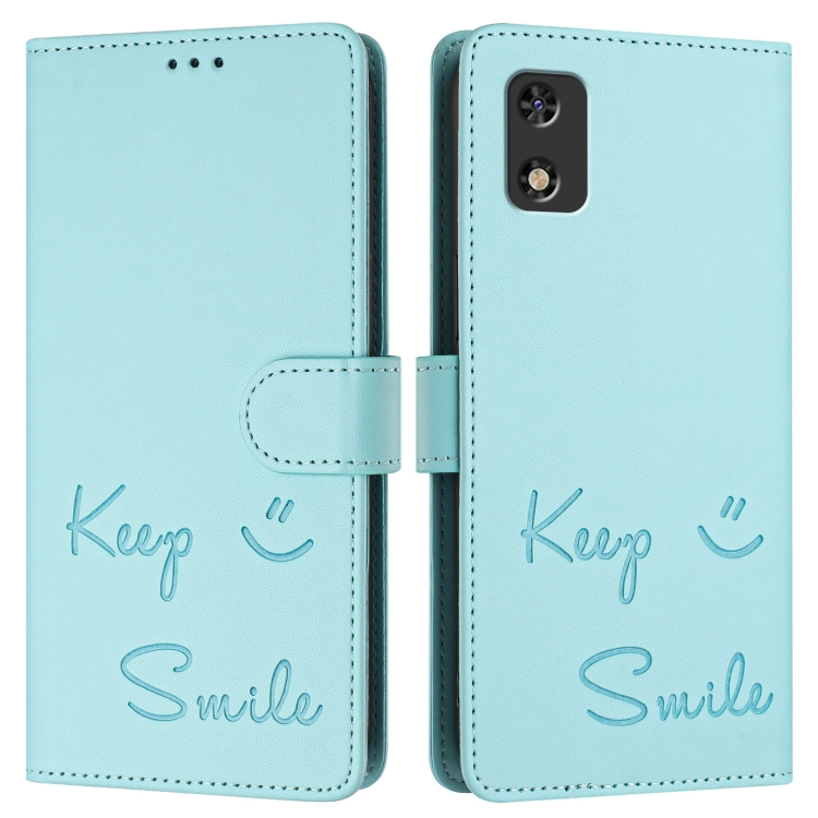 Funda de Cuero Rfid con Relieve Sonriente para Tecno Pop 5C (Verde Menta)