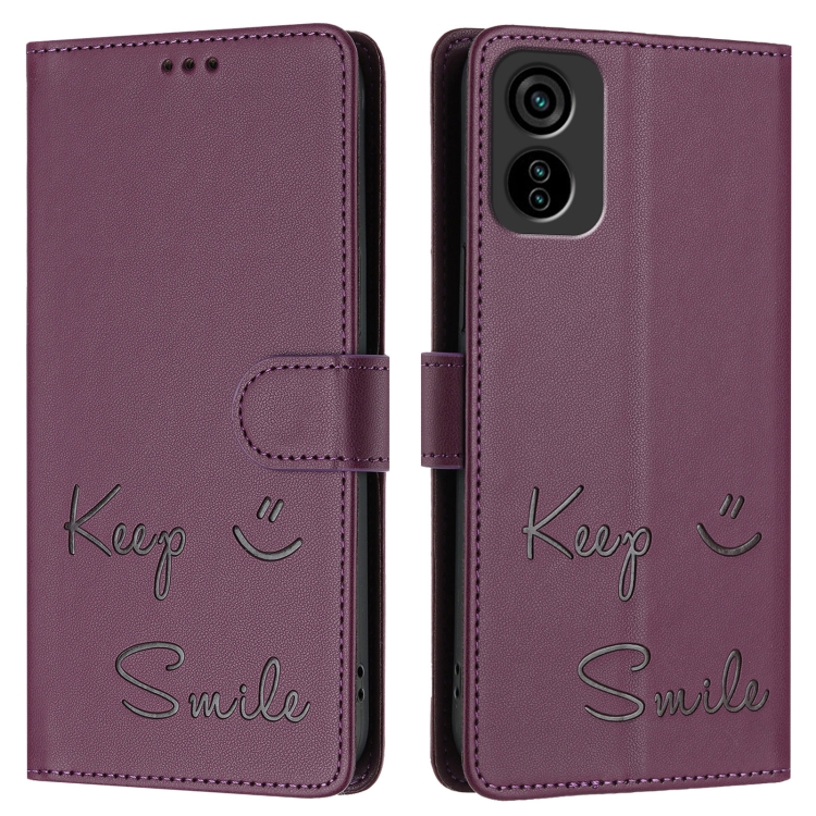 Funda de Cuero Rfid con Relieve Sonriente para Tecno Pop 6C / Itel A18 (Violeta)