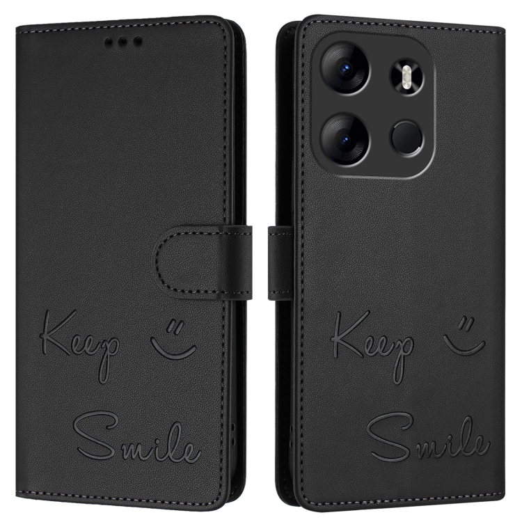 Funda de Cuero Rfid con Relieve Sonriente para Tecno Pop 7 y Pop 7 Pro (Negra)