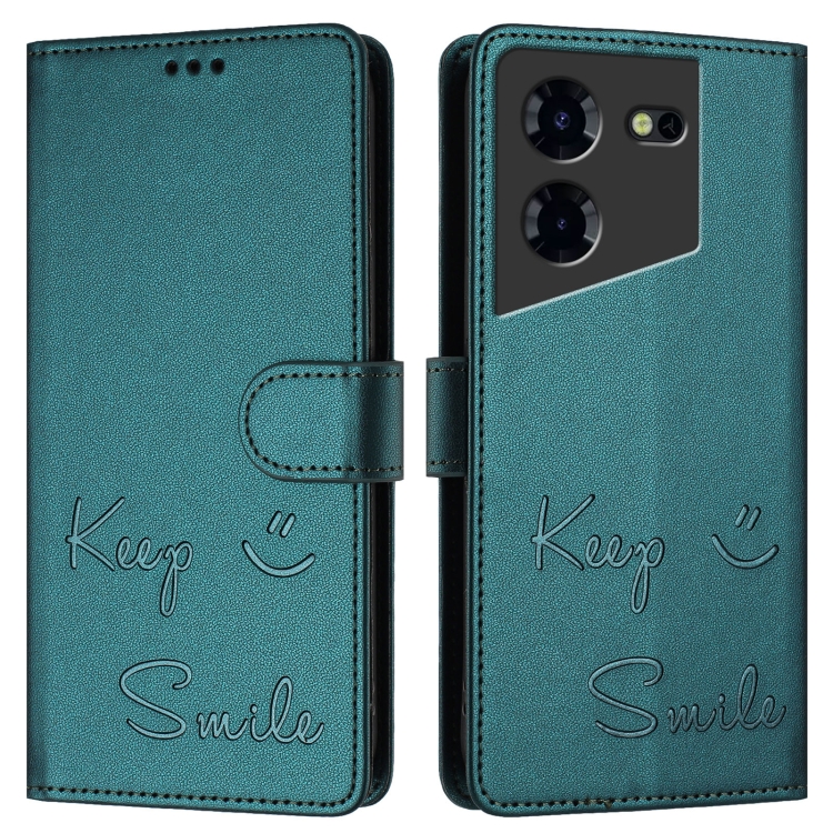 Funda de Cuero Rfid con Relieve Sonriente para Tecno Pova 5 Pro 5G (Verde Pavo Real)