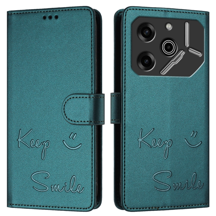 Funda de Cuero Rfid con Relieve Sonriente para Tecno Pova 6 Pro y Pova 6 5G (Verde Pavo Real)