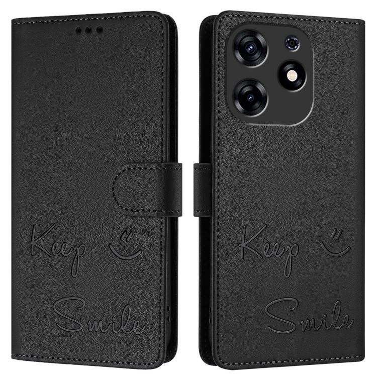 Funda de Cuero Rfid con Relieve Sonriente para Tecno Spark 10 Pro (Negra)