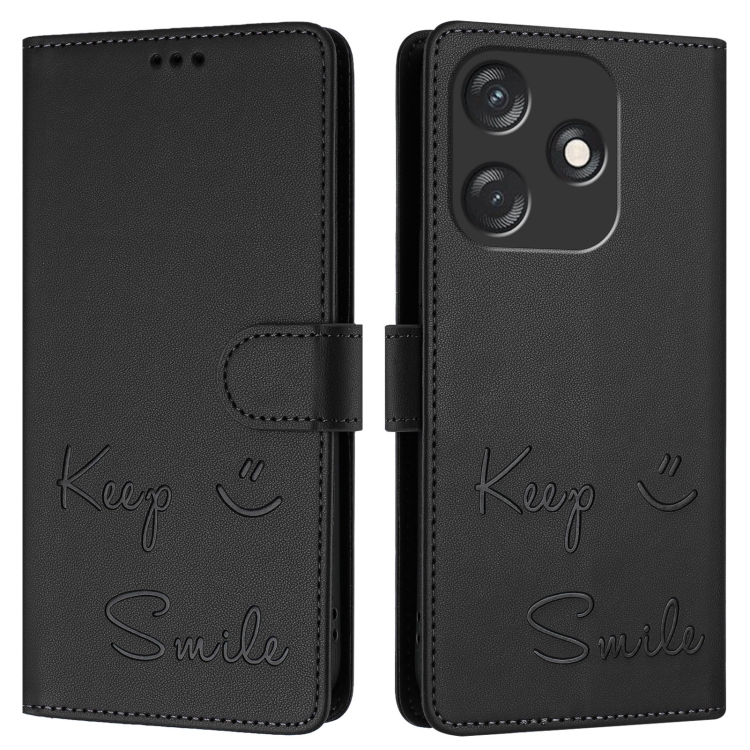 Funda de Cuero Rfid con Relieve Sonriente para Tecno Spark 10C (Negra)