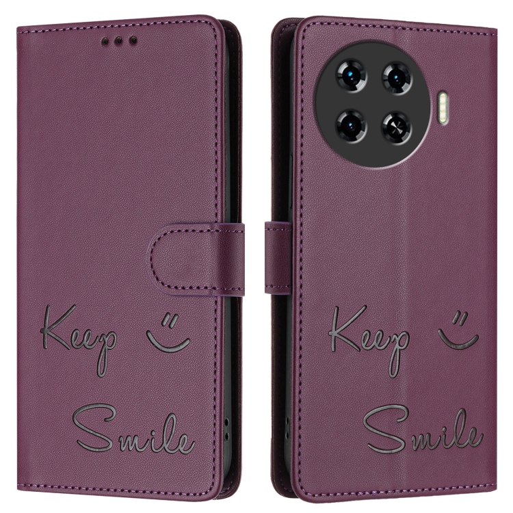 Funda de Cuero Rfid con Relieve Sonriente para Tecno Spark 20 Pro+ (Violeta)