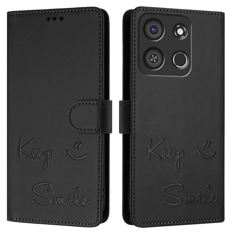 Funda de Cuero Rfid para Teléfono Itel A05S con Relieve Sonriente (Negra)