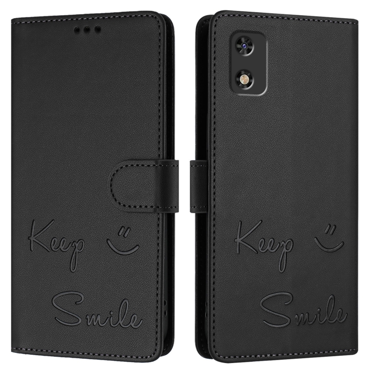 Funda de Cuero Rfid con Relieve Sonriente para Teléfono Itel A23 Pro/A17 (Negra)