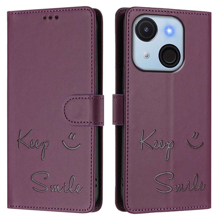 Funda de Cuero Rfid con Relieve Sonriente para Teléfono Itel A50C (Violeta)