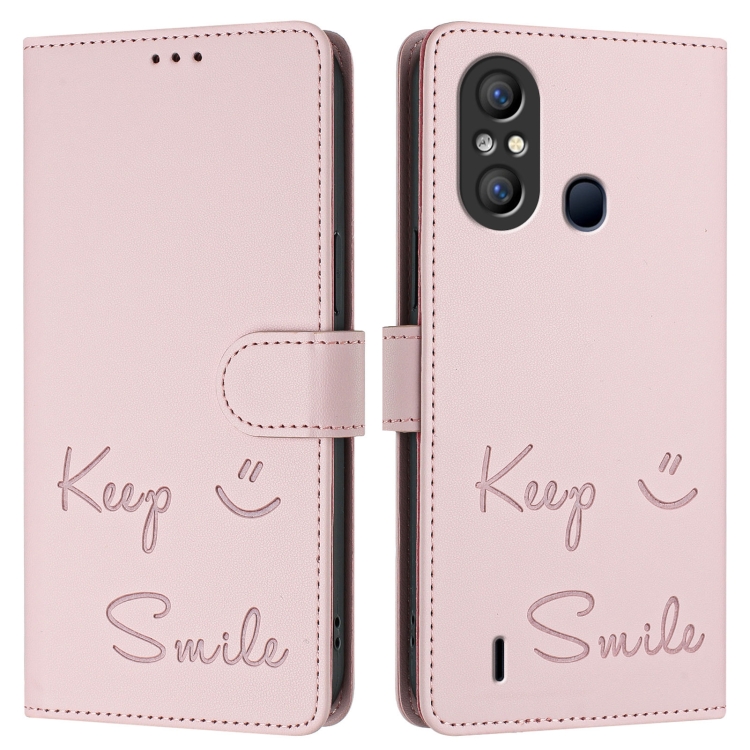 Funda de Cuero Rfid con Relieve Sonriente para Teléfono Itel A58/A49 (Rosa)