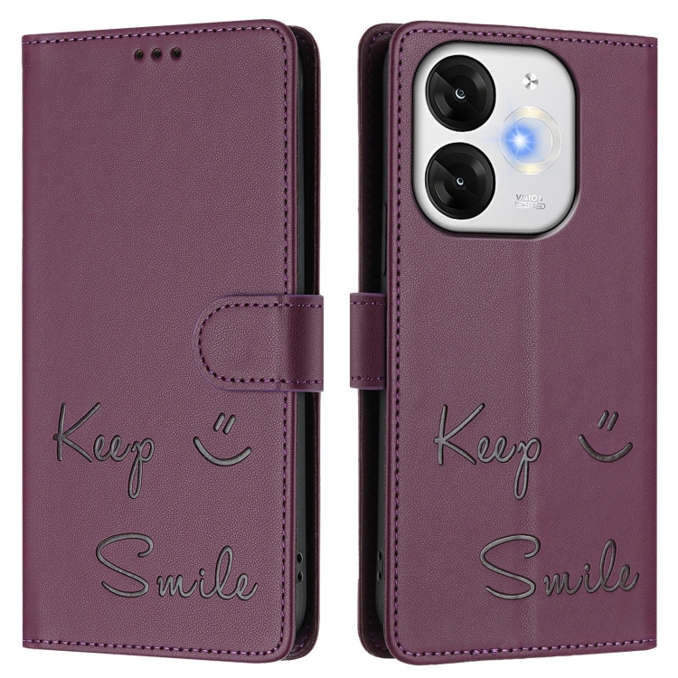 Funda de Cuero Rfid con Relieve Sonriente para Teléfono Itel A80 4G (Violeta)