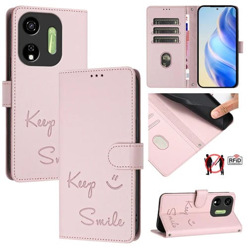 Funda de Cuero Rfid para Teléfono Itel P55 5G con Relieve Sonriente (Rosa)