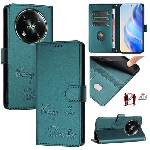 Funda de Cuero Rfid con Relieve Sonriente para Teléfono Itel Rs4 S666Ln (Verde Pavo Real)