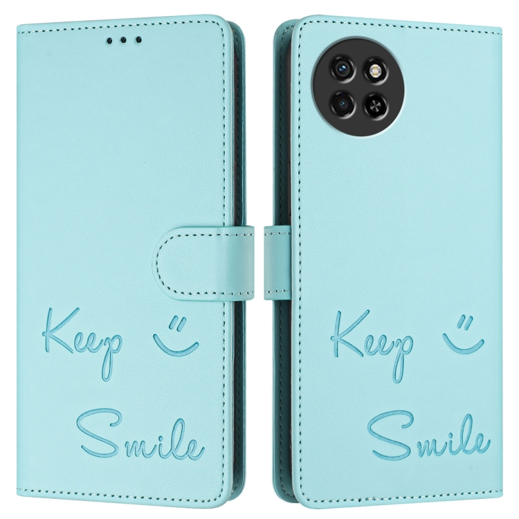 Funda de Cuero Rfid con Relieve Sonriente para Teléfono Itel S23 S665L (Verde Menta)