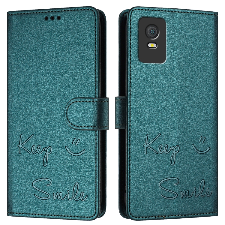 Funda de Cuero Rfid con Relieve Sonriente para Teléfono TCL 403 (Verde Pavo Real)