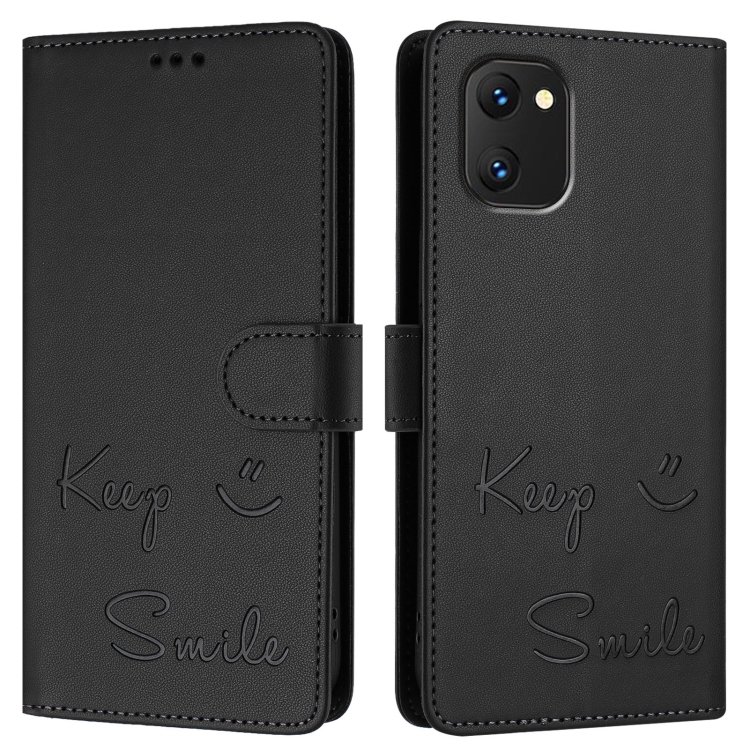 Funda de Cuero Rfid con Relieve Sonriente para Umidigi Power 7/7S (Negra)