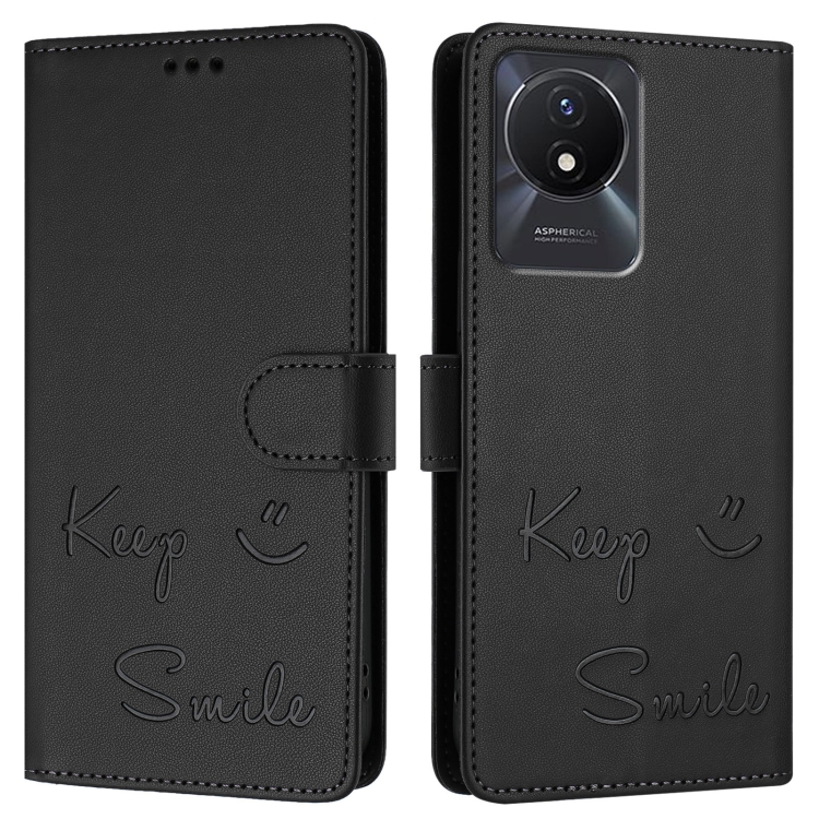 Funda de Cuero Rfid con Relieve Sonriente para Vivo Y11 2023/Y02T (Negra)