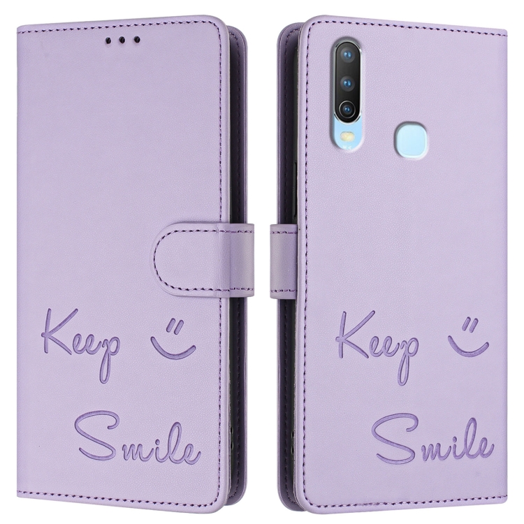 Funda de Cuero Rfid con Relieve Sonriente para Vivo Y17/Y15/Y12/Y11 (Morado Claro)