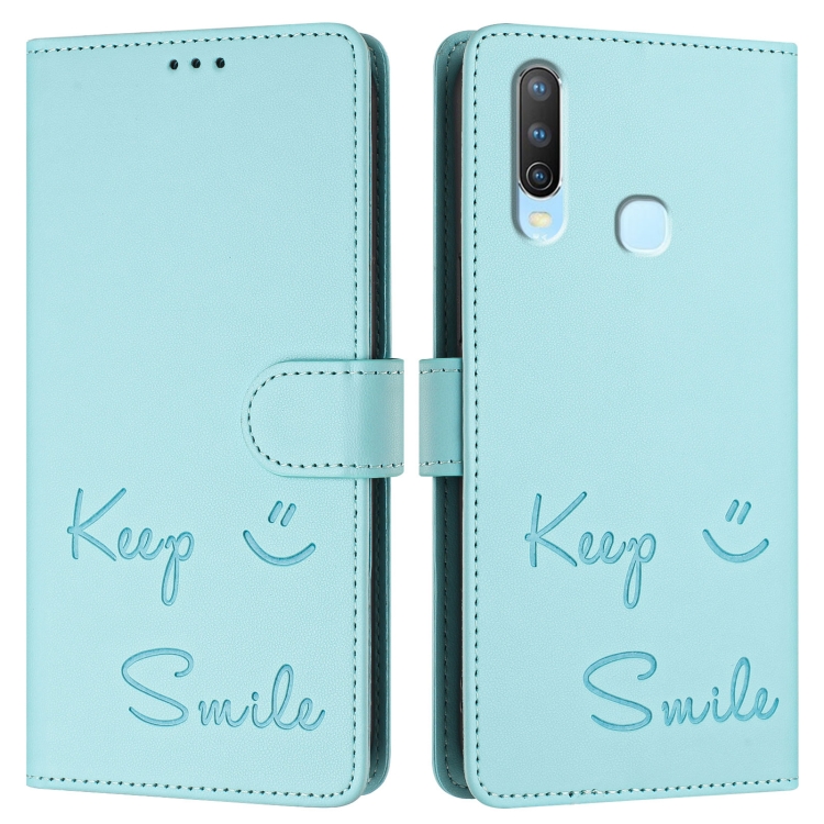 Funda de Cuero Rfid con Relieve Sonriente para Vivo Y17/Y15/Y12/Y11 (Verde Menta)