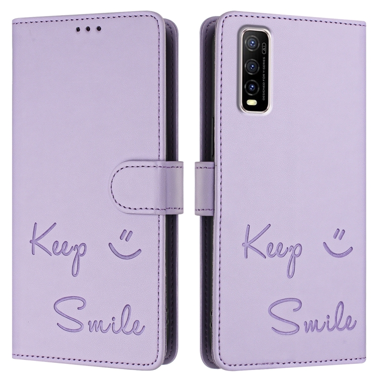 Funda de Cuero Rfid con Relieve Sonriente para Vivo Y70S (Morado Claro)