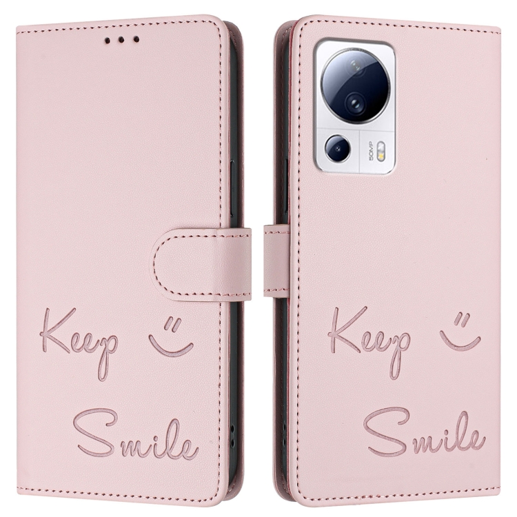 Funda de Cuero Rfid con Relieve Sonriente para Xiaomi 13 Lite/Civi 2 (Rosa)