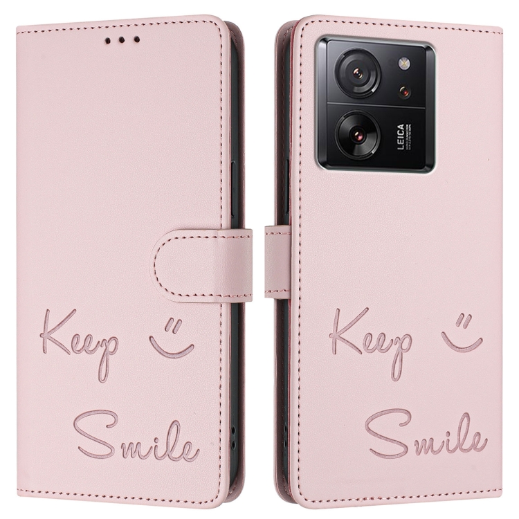 Funda de Cuero Rfid con Relieve Sonriente para Xiaomi 13T/13T Pro (Rosa)