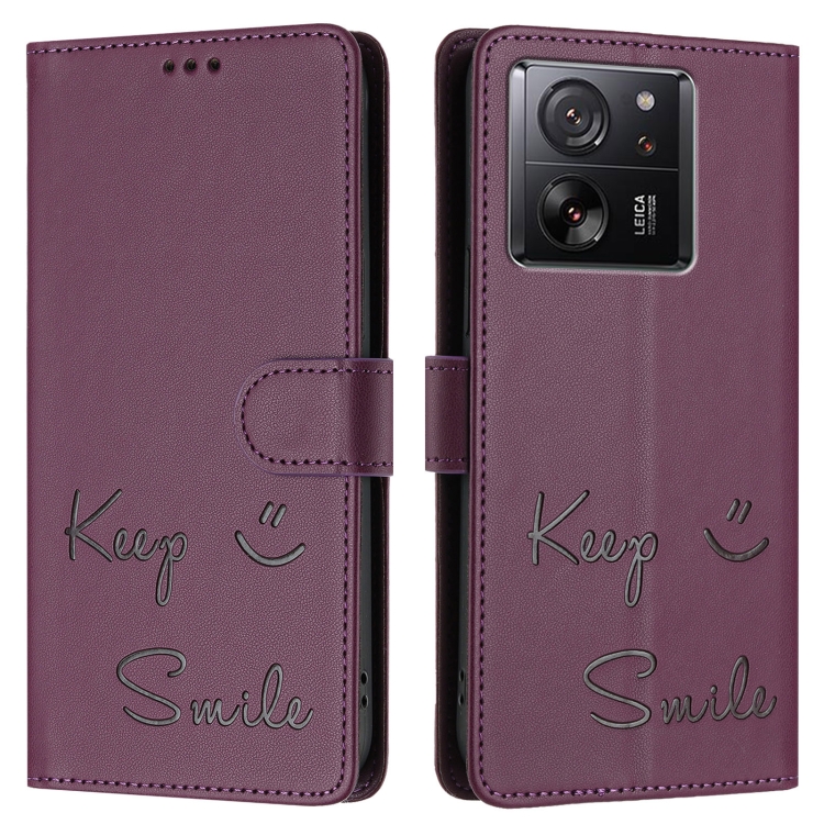 Funda de Cuero Rfid con Relieve Sonriente para Xiaomi 13T/13T Pro (Violeta)