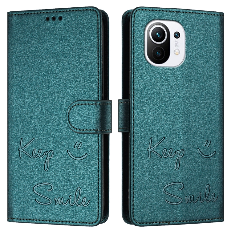 Funda de Cuero Rfid con Relieve Sonriente para Xiaomi Mi 11 (Verde Pavo Real)