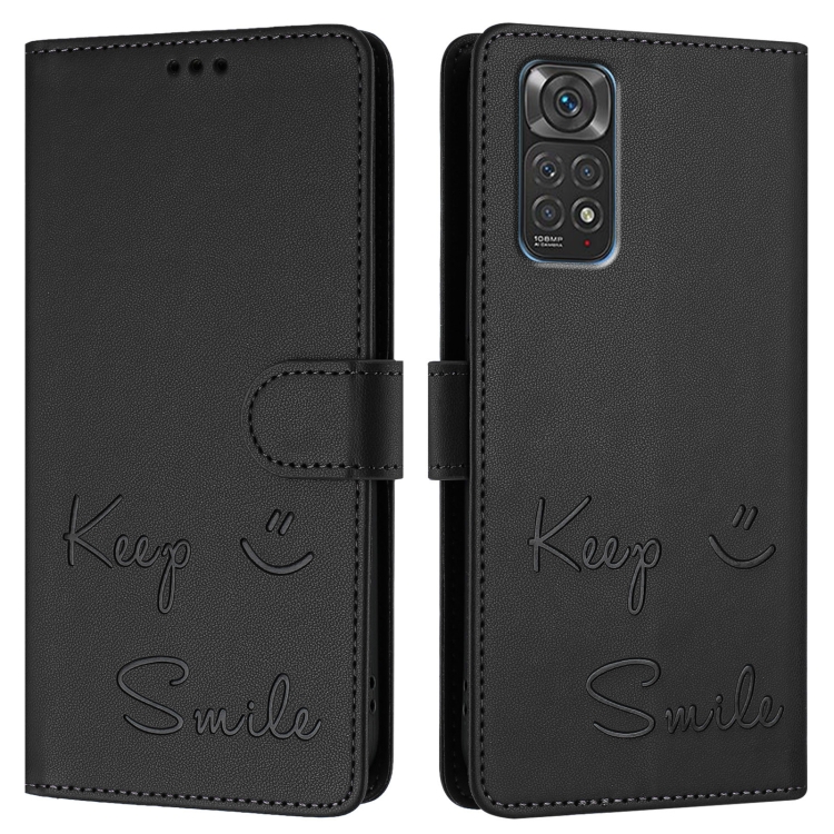 Funda de Cuero Rfid con Relieve Sonriente para Xiaomi Poco M4 Pro 5G (Negra)